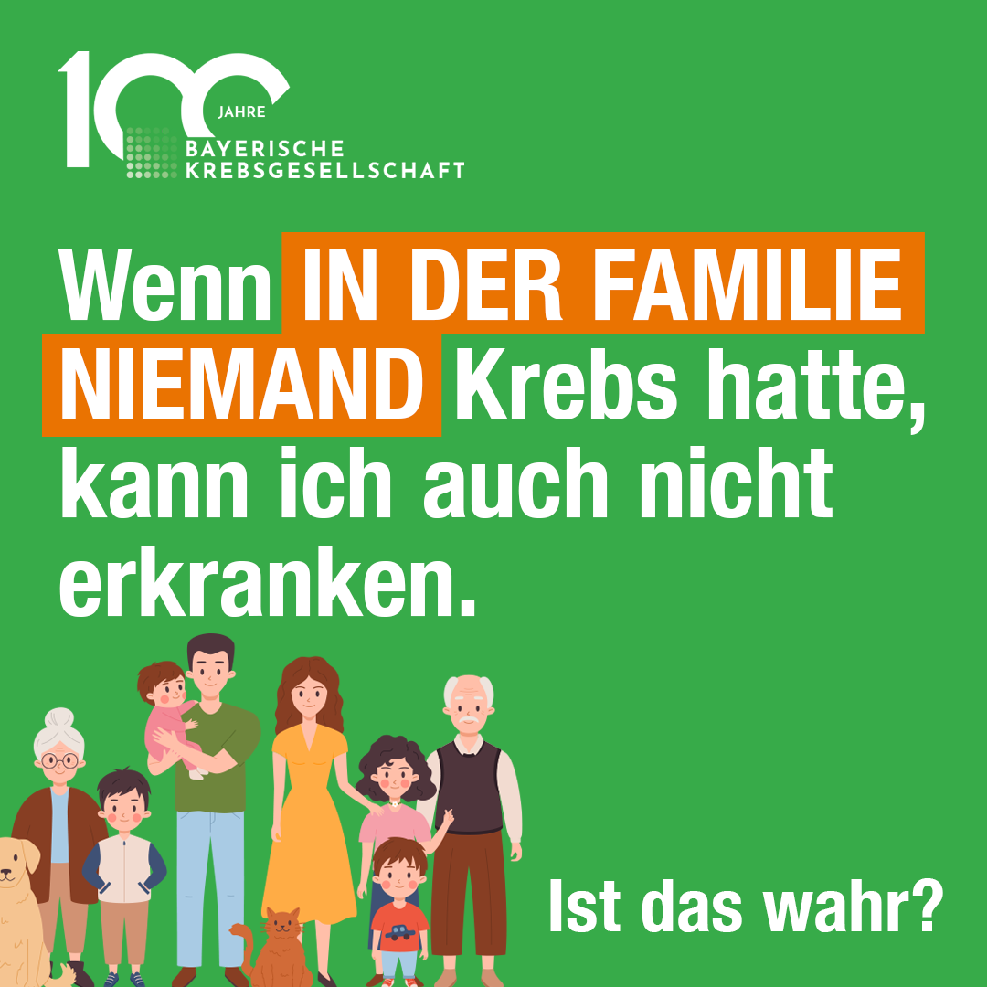 Nein, leider ist es oftmals nicht so, dass man keinen Krebs bekommen kann, wenn niemand in der Familie betroffen ist. In einigen Familien tritt Krebs jedoch gehäuft auf. Das kann auf eine erbliche Veranlagung hinweisen, bei der betroffene Personen eine genetische Veränderung im Erbgut tragen, die das Krebsrisiko erhöht. Fachleute schätzen: Etwa 5 bis 10 von 100 Krebserkrankungen entstehen aufgrund einer einzelnen erblichen Veranlagung.