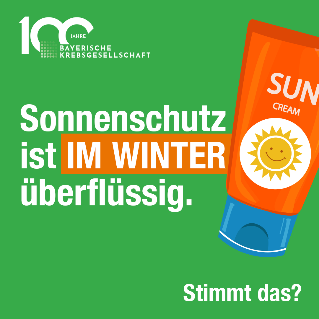 Nein, auch im Winter ist Sonnenschutz wichtig, da die UV-Strahlung durch den Schnee reflektiert wird und die Haut sowie die Augen schädigen kann. Viele unterschätzen, wie stark die UV-Belastung selbst an bewölkten Tagen im Winter ist. Deshalb empfehlen Experten, neben einer guten Sonnencreme auch eine Sonnenbrille zu tragen, um Haut und Augen vor den schädlichen Auswirkungen der UV-Strahlung zu schützen.